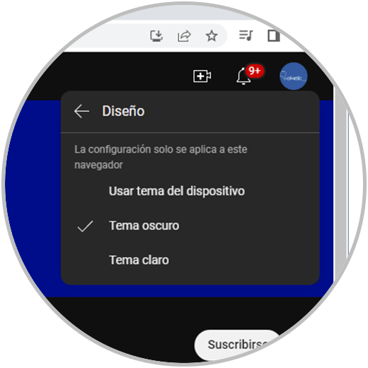 Activamos el "Tema oscuro" y YouTube estará en este modo: