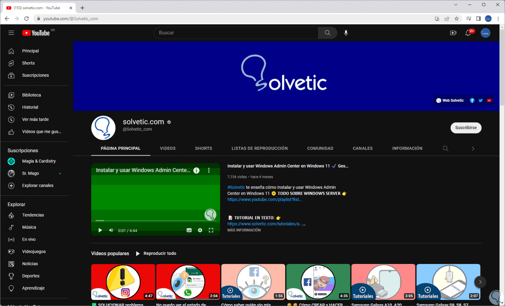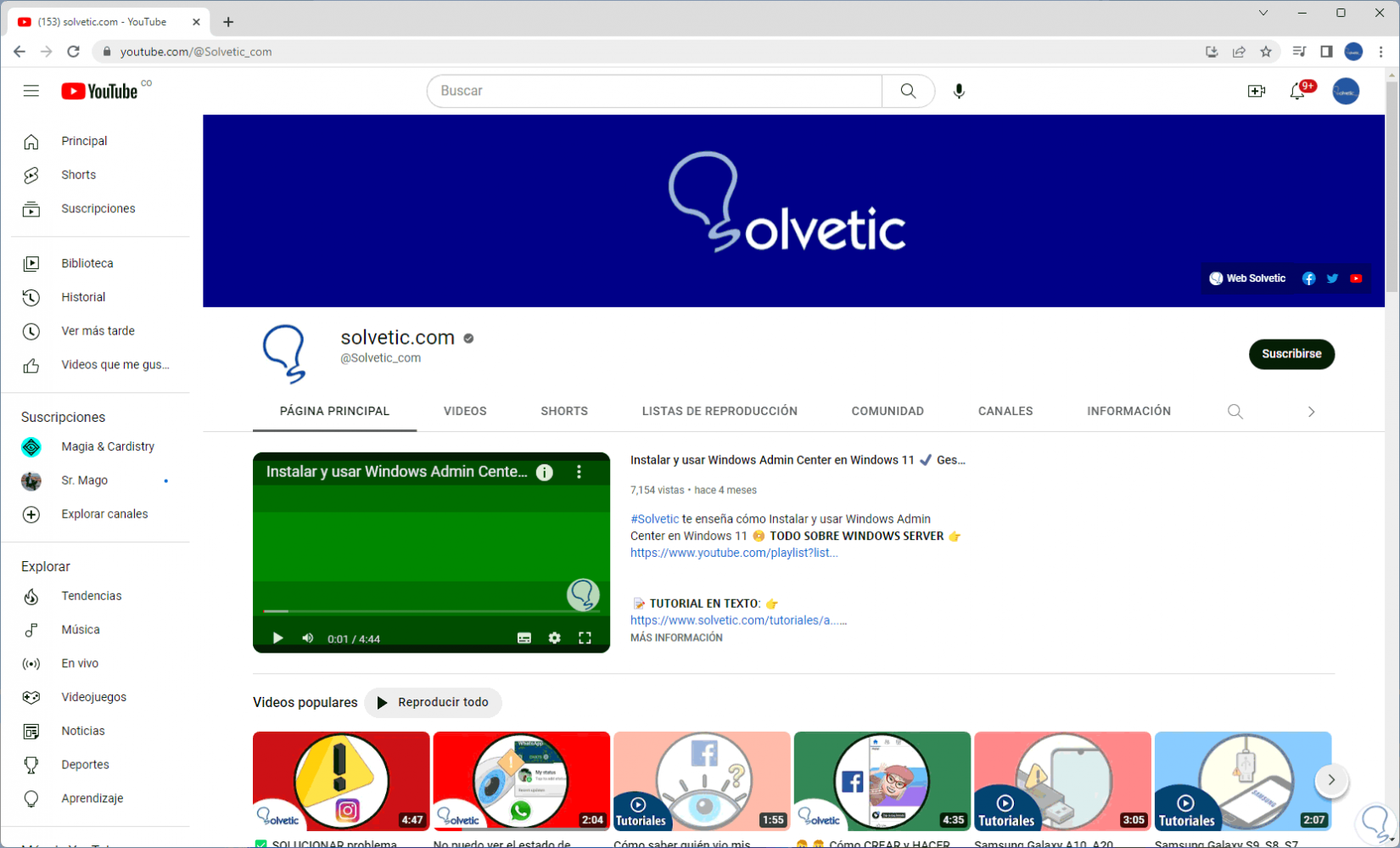 Para el PC es proceso es simple, abrimos YouTube en el siguiente enlace: