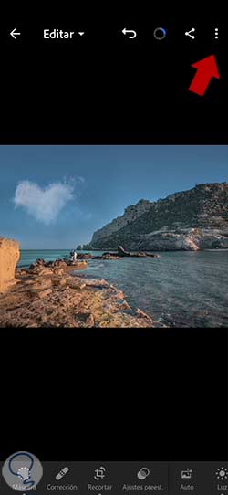 Abrimos nuestra fotografía en Lightroom Mobile ya sea de alguna biblioteca previa o bien importándola.