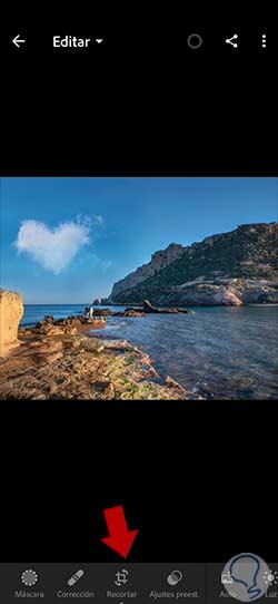 Pulsaremos en la opción de "Recorte" que veremos en el panel inferior para comenzar a redimensionar nuestra imagen.