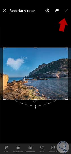 Aquí elegiremos la proporción de 5:4 y ajustaremos nuestra imagen a este encuadre. Para guardar los cambios pulsaremos sobre el check superior derecho que aparece.