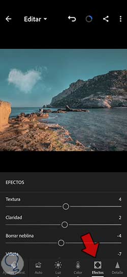 Una vez hemos terminado de configurar el color de nuestra fotografía continuaremos su edición. En este caso entraremos en “Efectos” e iremos aplicando diferentes valores en función de lo que queramos conseguir. En este caso buscaremos dar un poco más de Textura a la imagen y definirla suavemente también con “Claridad” y después aplicaremos un efecto ligero de neblina y algo de viñeteado.