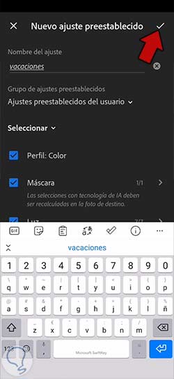 Pulsa en el check superior para guardarlo en la biblioteca de ajustes.