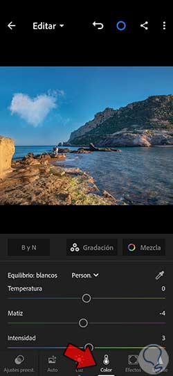Volvemos para seguir editando nuestra fotografía. Ahora continuaremos modificando el “Color” de nuestra fotografía usando el apartado inferior que aparece.