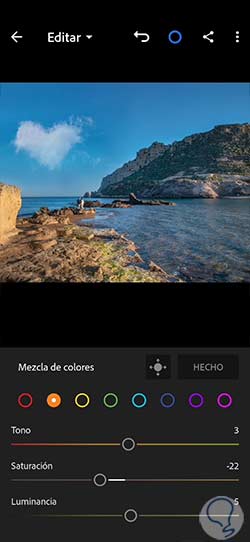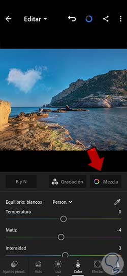 También tienes la posibilidad de editar uno por uno los colores presentes en la fotografía. Para ello podremos hacer una segmentación de color pulsando en la opción de “Mezcla”.