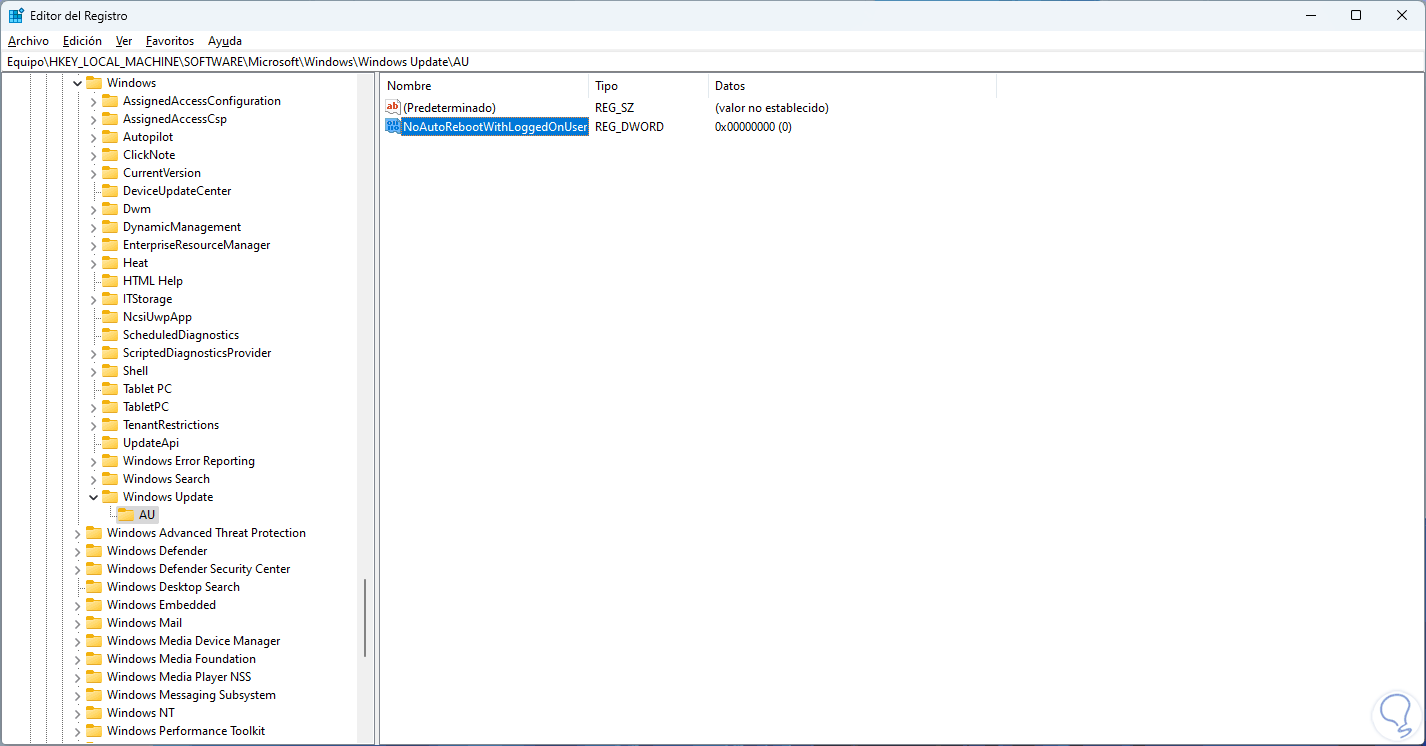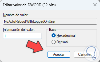 Asigna el nombre "NoAutoRebootWithLoggedOnUser":