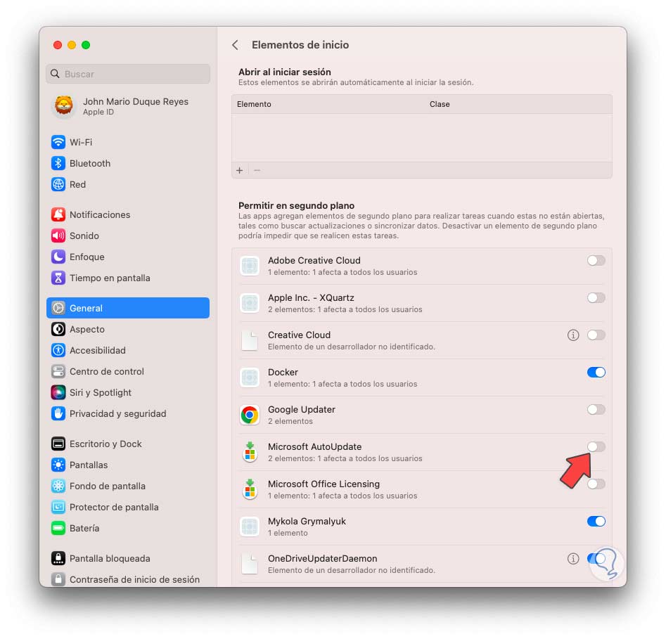 Activamos el interruptor "Microsoft AutoUpdate" para que se realicen las actualizaciones de manera automática