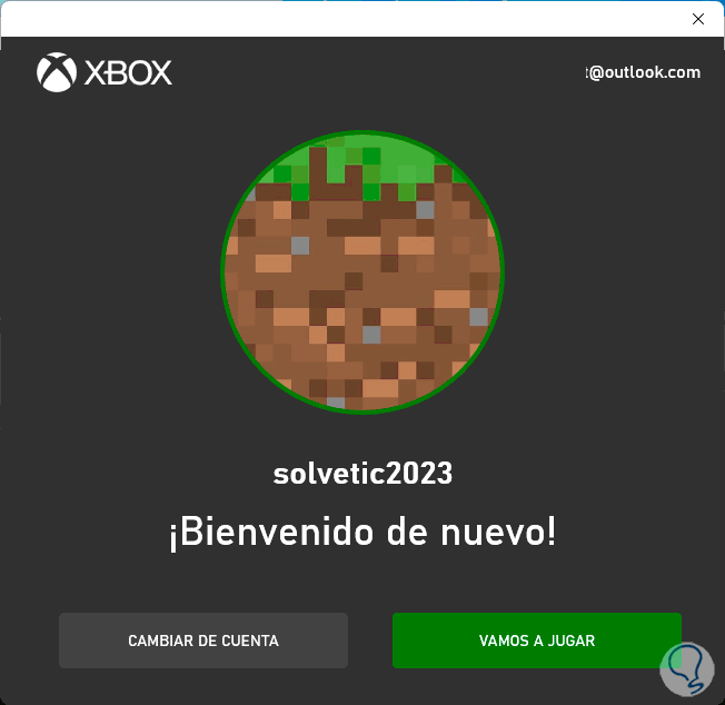 Asignamos el nombre de usuario en Xbox (ligado a Minecraft), damos clic en “Vamos” y se habrá iniciado la sesión: