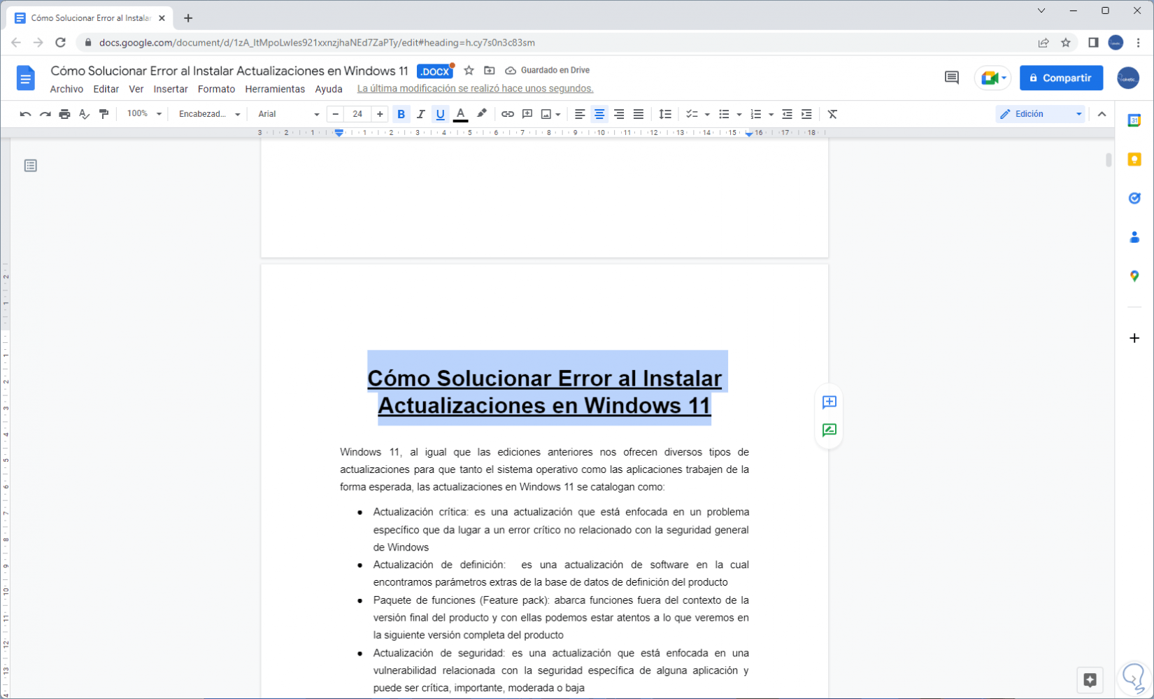 Al dar clic en alguno de estos se añadirá el Titulo 1: