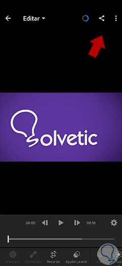 Editamos nuestro vídeo con los diferentes ajustes que creamos necesarios en las opciones que muestra Lightroom Mobile. Una vez lo tengas listo puedes empezar a exportarlo desde el icono de exportar superior.