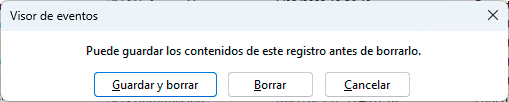 Podemos borrar los eventos almacenados de una manera simple, abrimos el Visor de eventos: