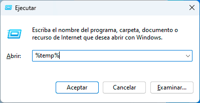 Ingresamos "%temp%" y con este comando se abrirán los archivos del usuario local que ha iniciado sesión en Windows 11: