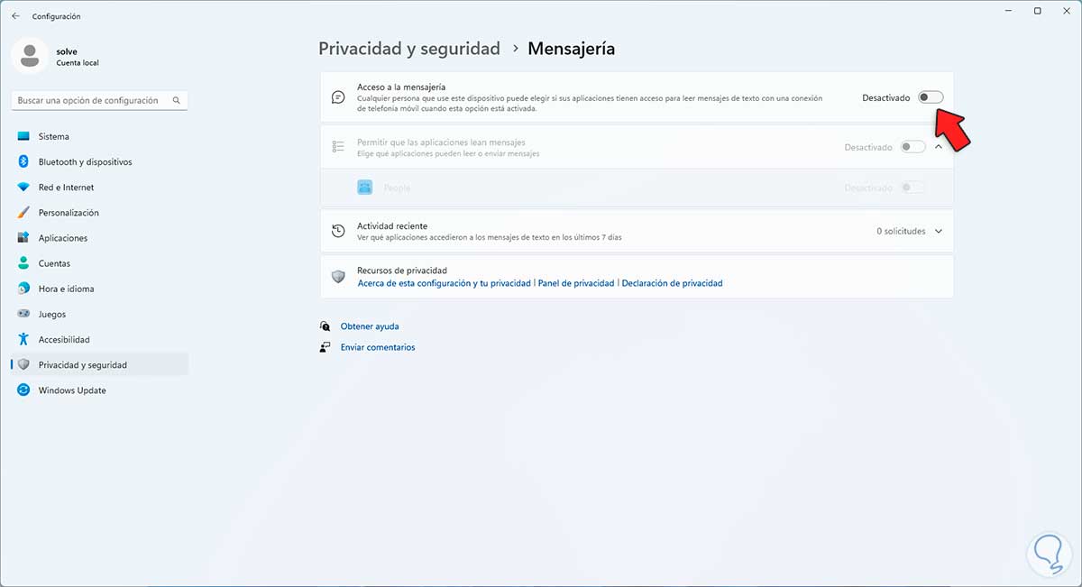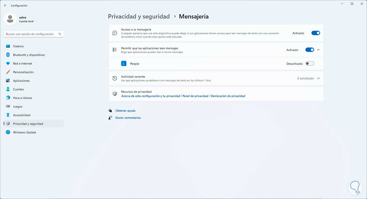 Desactivamos los interruptores de las app deseadas para que usen la ubicación, luego de esto vamos a "Mensajería":