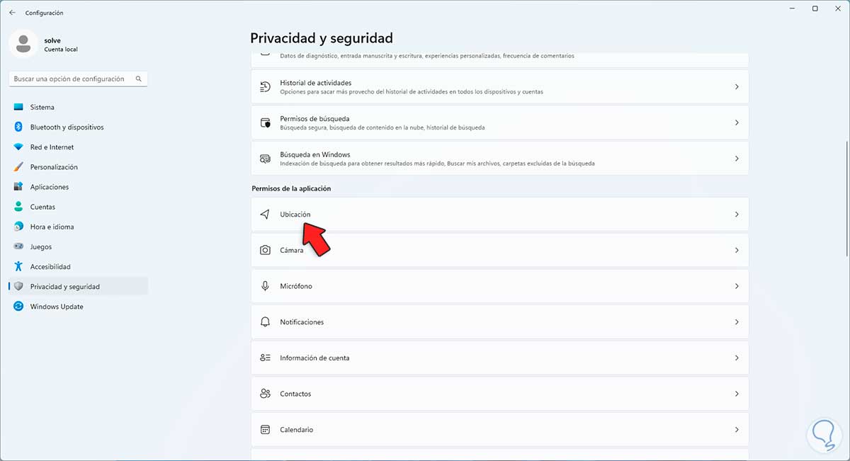 Vamos a "Privacidad y seguridad" y buscamos la sección "Ubicación":