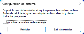 De nuevo en la ventana de configuración de sistema damos clic en "Aceptar" y veremos este mensaje: