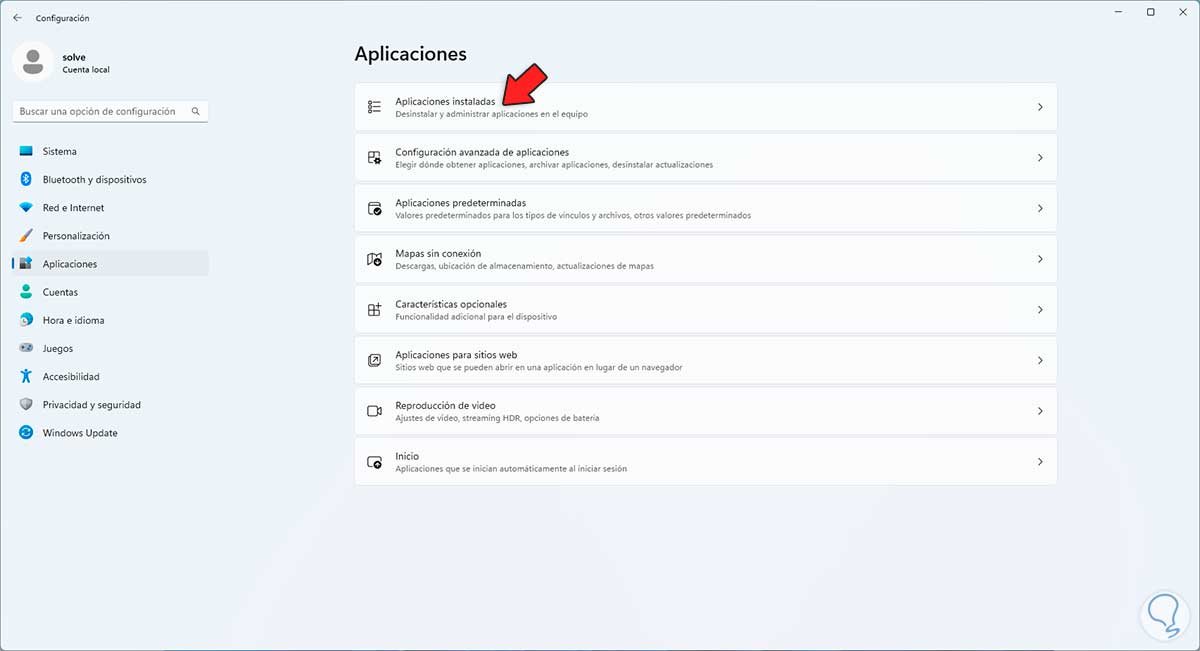 Finalmente podemos usar los métodos desde Configuración, vamos a "Inicio - Configuración - Aplicaciones - Aplicaciones instaladas":