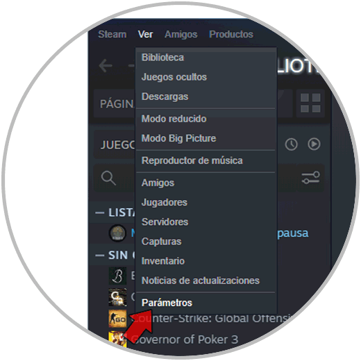 Abrimos Steam e iremos a "Ver - Parámetros":