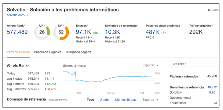 De este modo podrás ver si este dato ha mejorado o cual ha sido su evolución desde que empezaste la estrategia de Link Building hasta el momento.