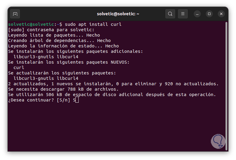 Ingresamos la letra S para confirmar la descarga e instalación:
