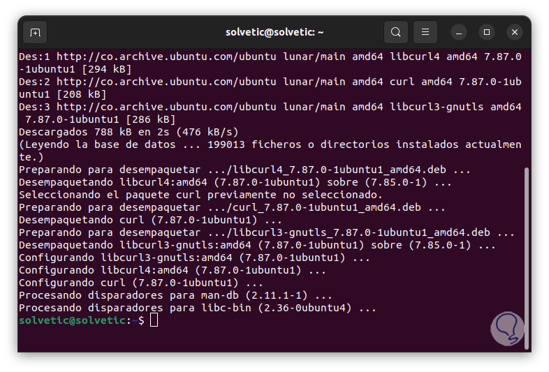 Abrimos la terminal y allí instalamos la utilidad Curl para realizar descargas desde la web: