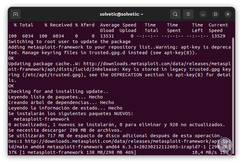 Esperamos a que cada componente de Metasploit sea instalado en Ubuntu: