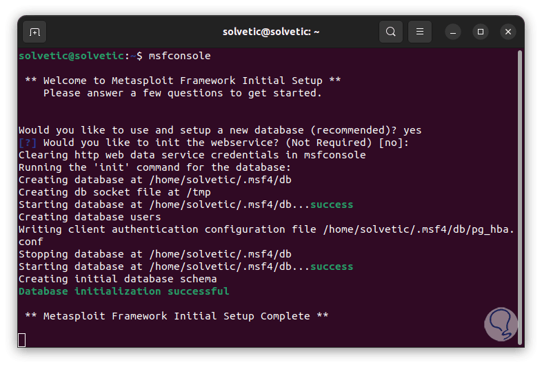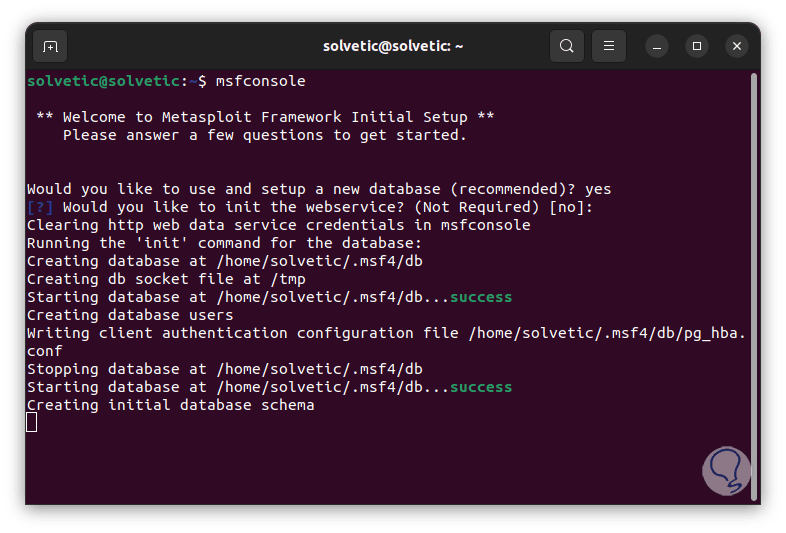 Allí ingresamos la palabra “yes” para crear una nueva base de datos, ahora podremos iniciar el servicio web: