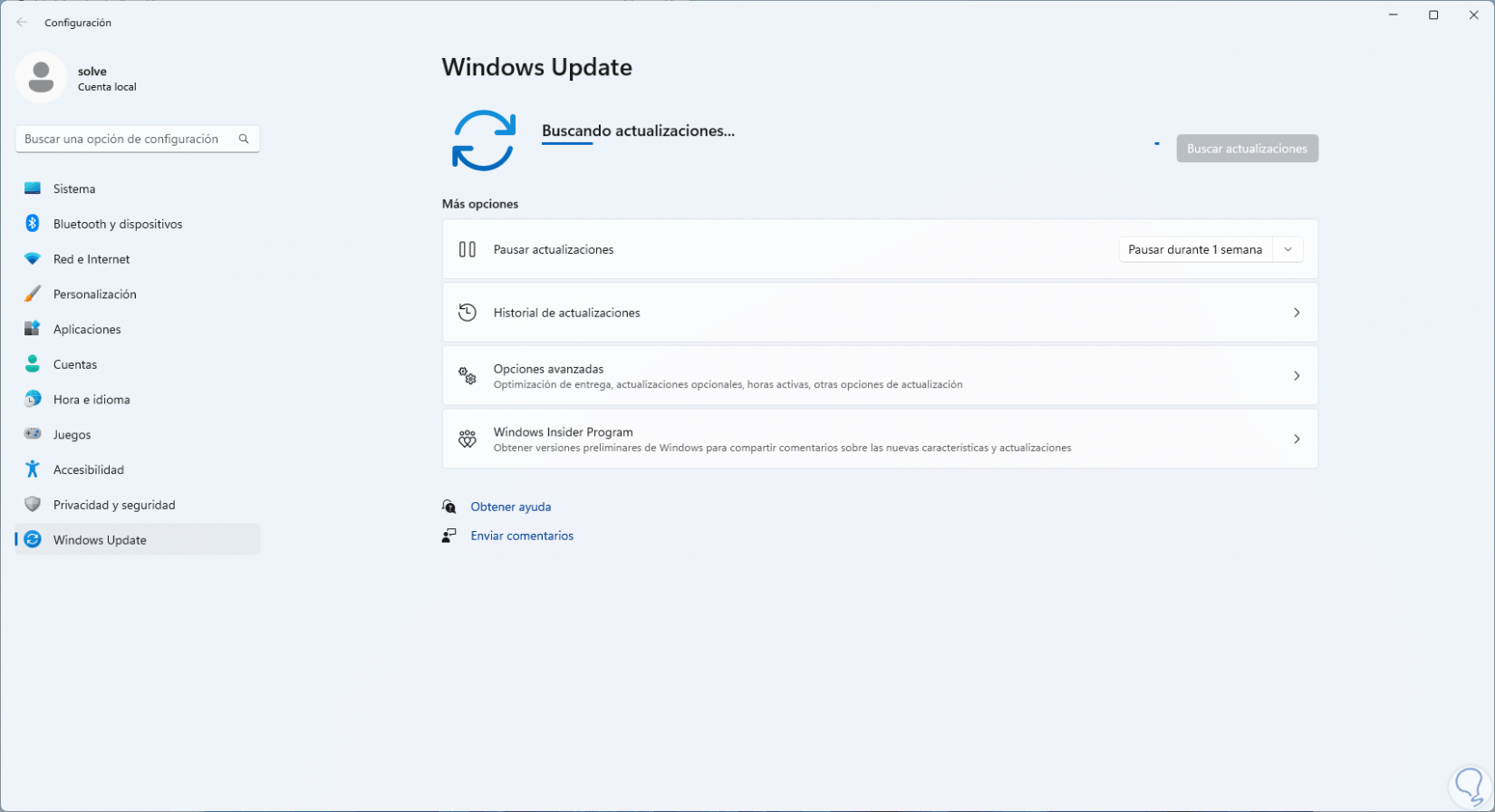 Pulsamos Enter sobre "Buscar controladores actualizados en Windows Update" el cual ya está activa y confirmamos si existen actualizaciones: