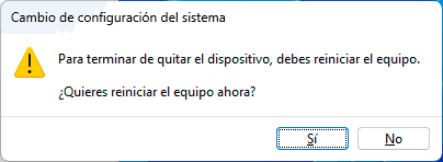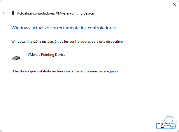 Esta opción permite que sea desinstalado el controlador actual peor después del reinicio del sistema se instalara la versión mas actual del mismo dando solución al error del cursor.