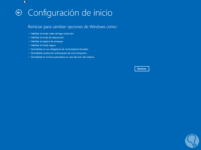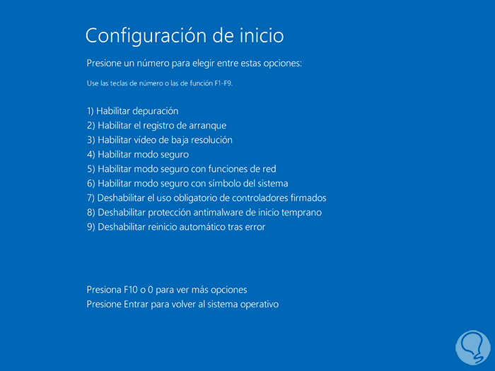Pulsa Enter para reiniciar Windows y ver lo siguiente:
