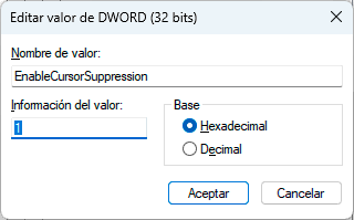 - 0: Deshabilitado y como tal no se suprime el cursor del mouse