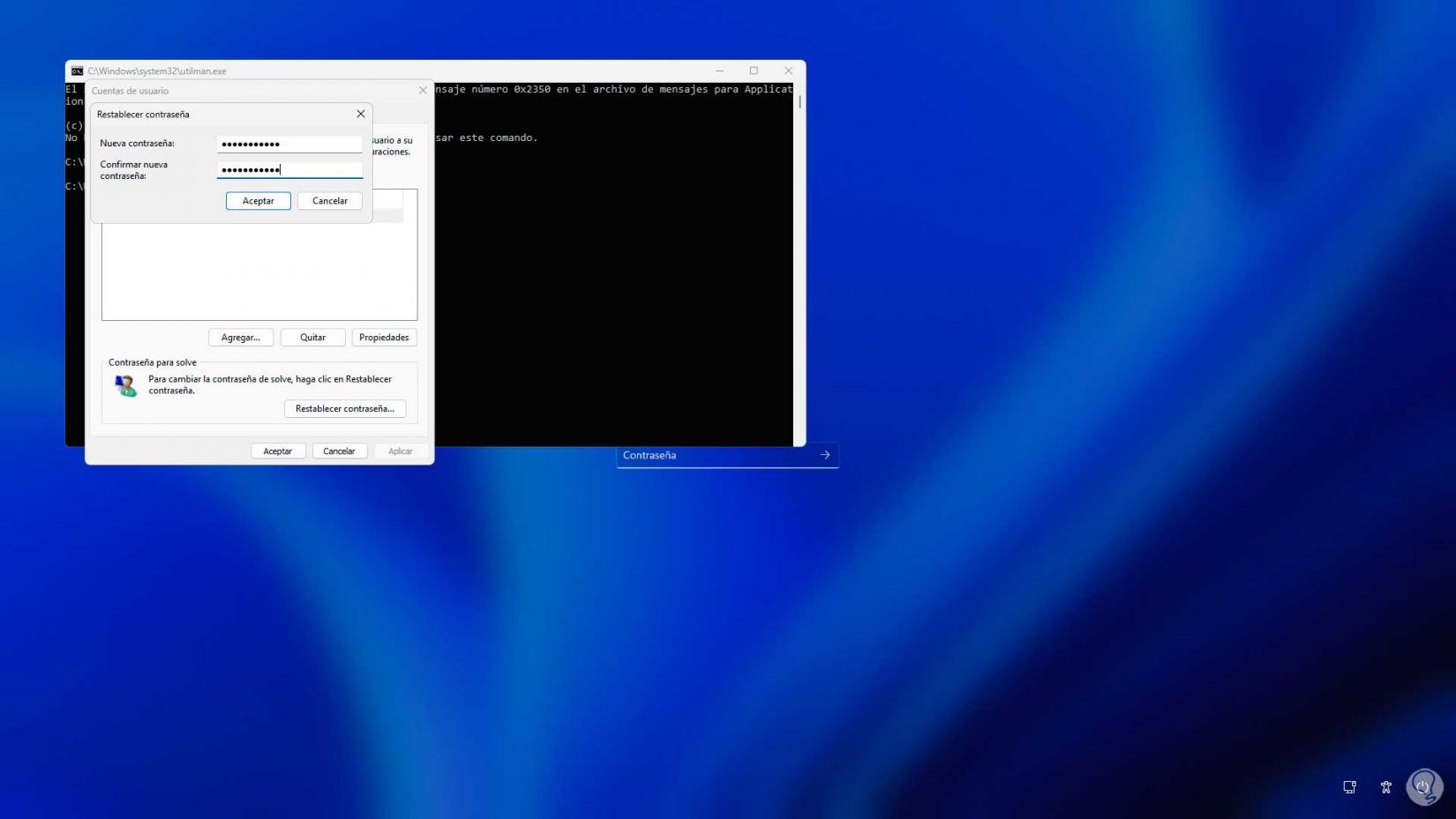 Cierra la consola e inicia sesión en Windows 11 con la contraseña asignada: