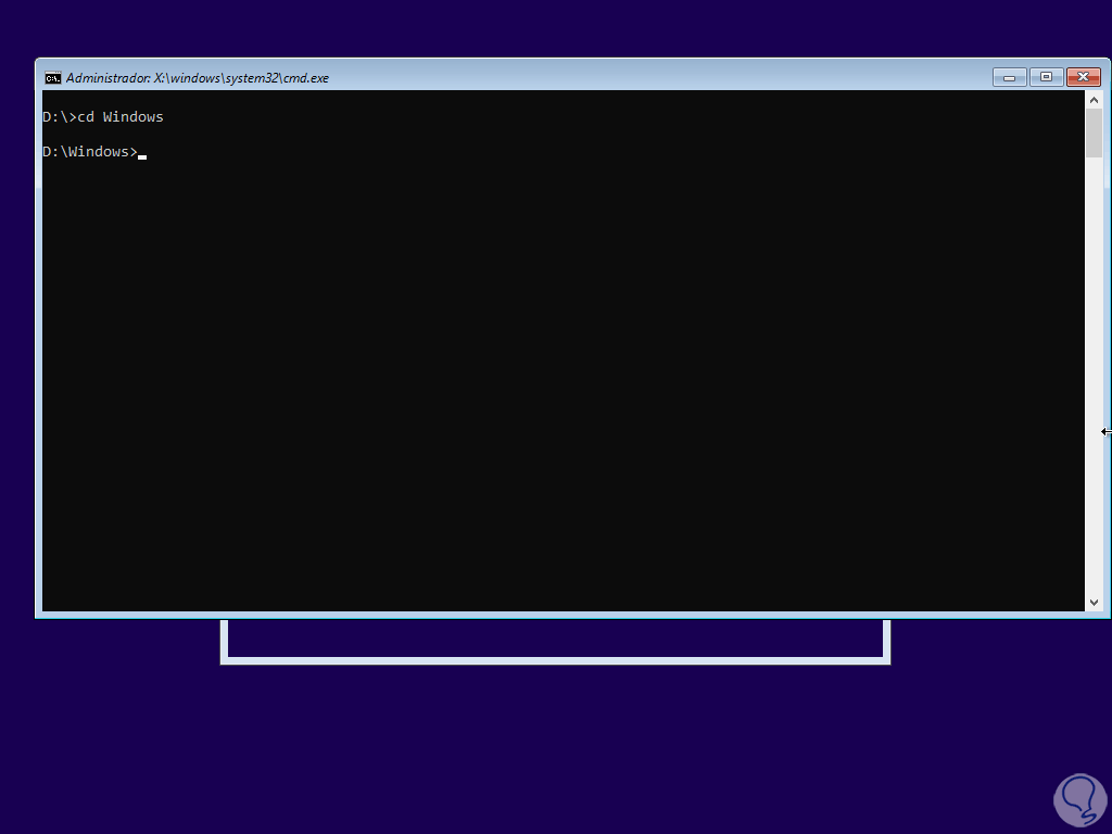 Salimos de la consola y accedemos a la unidad donde está instalado Windows 10 con la sintaxis: