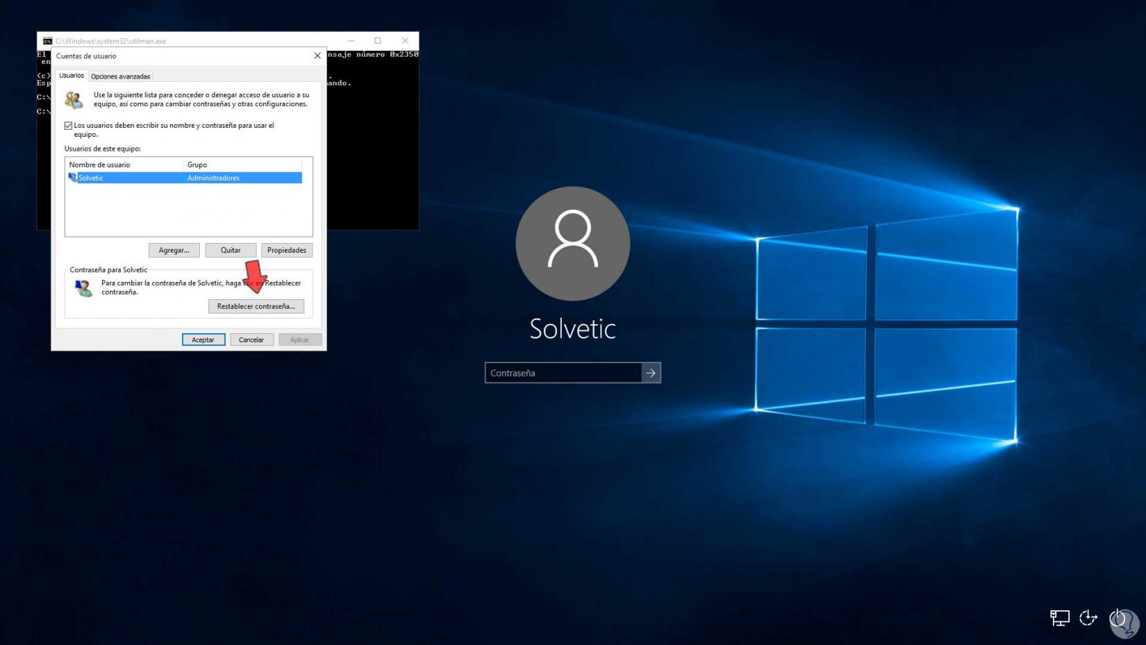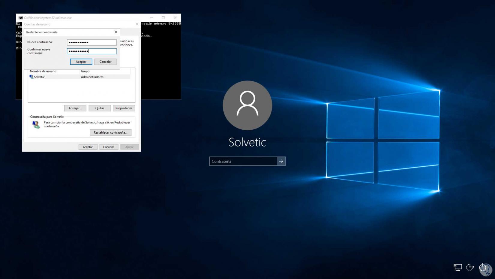 Aplica los cambios. Cierra la consola e inicia sesión en Windows 10 con la nueva contraseña: