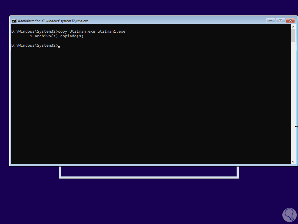 Reemplazamos la utilidad de accesibilidad por la consola del Símbolo del sistema: