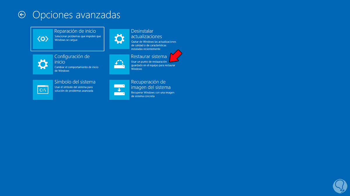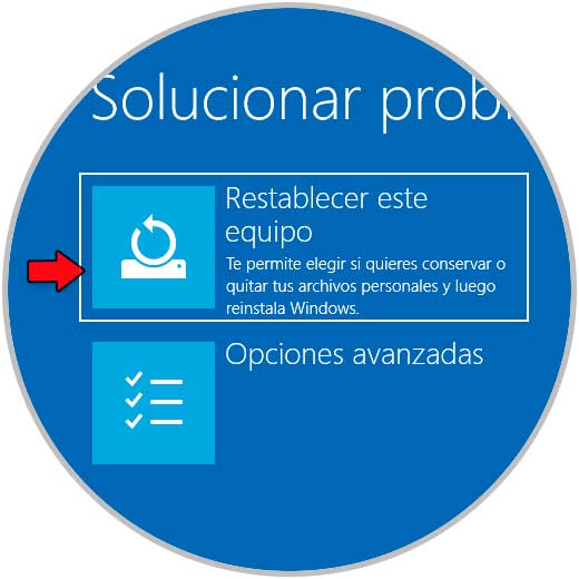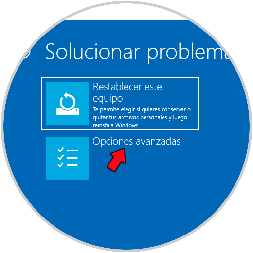 Para este método en el modo avanzado vamos a “Solucionar problemas”: