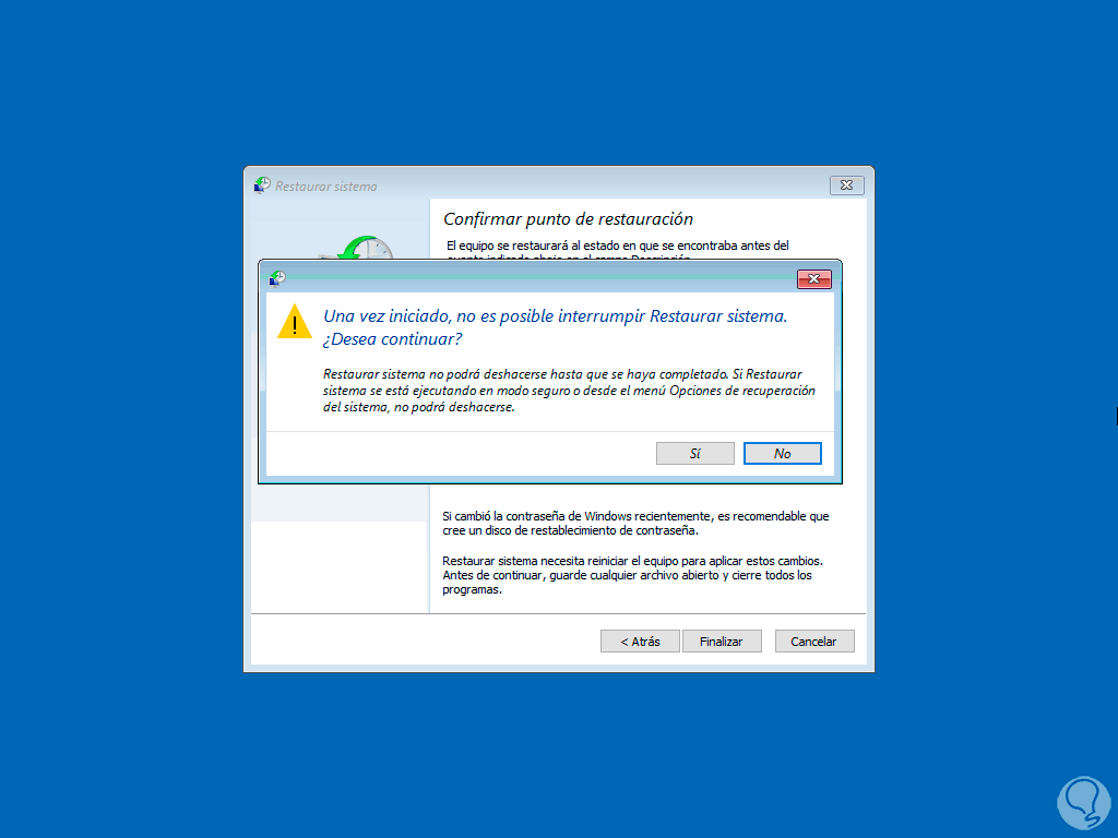 Allí debemos dar clic en “Si” para proceder con la restauración del sistema al punto indicado.