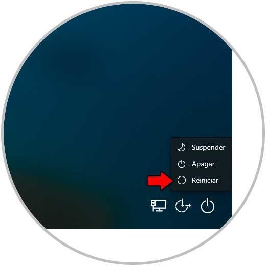 Para hacer uso de este método en la pantalla de bloqueo damos clic en el botón de apagado y pulsamos la tecla Shift y da clic en "Reiniciar" para acceder al modo avanzado: