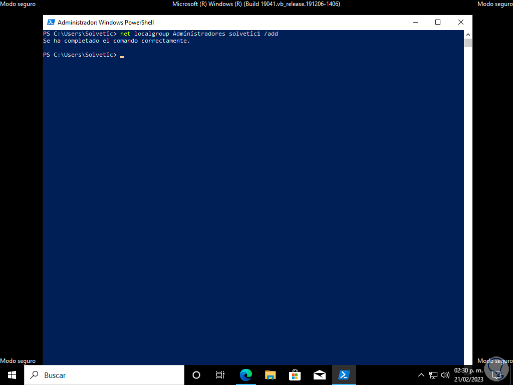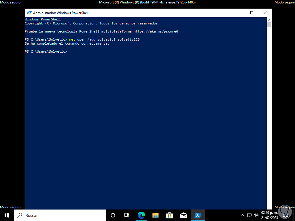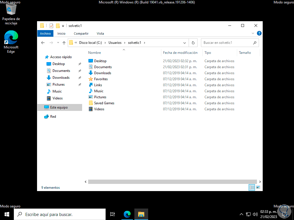 Accederemos, aun en Modo seguro, al nuevo usuario: