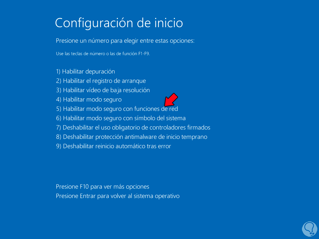 Pulsa la tecla F5 para acceder al Modo seguro con red: