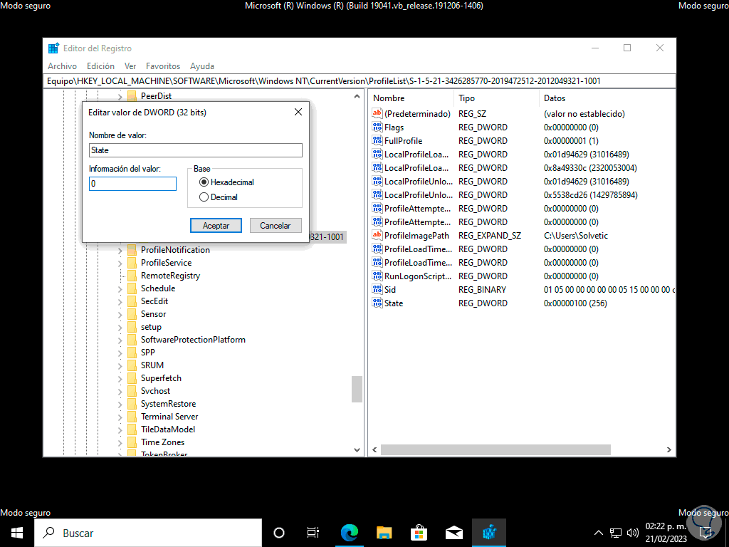 1 Error en el Servicio de perfil de usuario al iniciar sesión Windows 10 Solución desde Editor de registros