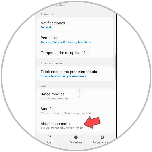 Para esto, entramos en "Ajustes-aplicaciones-WhatsApp"(los mismos pasos que en el apartado anterior) y selecciona "Almacenamiento".