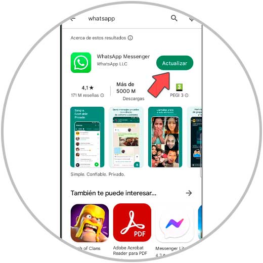 4 Actualizar la App de WhatsApp para solucionar No puedo escuchar los Audios de WhatsApp