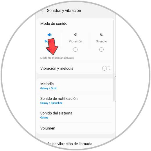 Ahora, desliza el menú superior y selecciona el Modo Sonido pulsando sobre la opción de Modo.