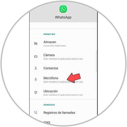 2 Comprobar que WhatsApp tiene permiso de acceso al micrófono para solucionar No puedo escuchar los audios de WhatsApp