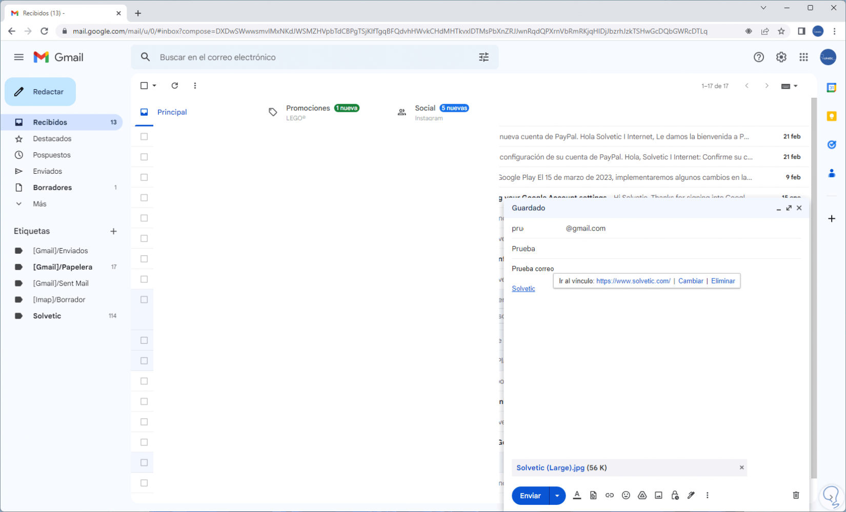 En "Enviados" puedes revisar que el correo ha sido enviado: