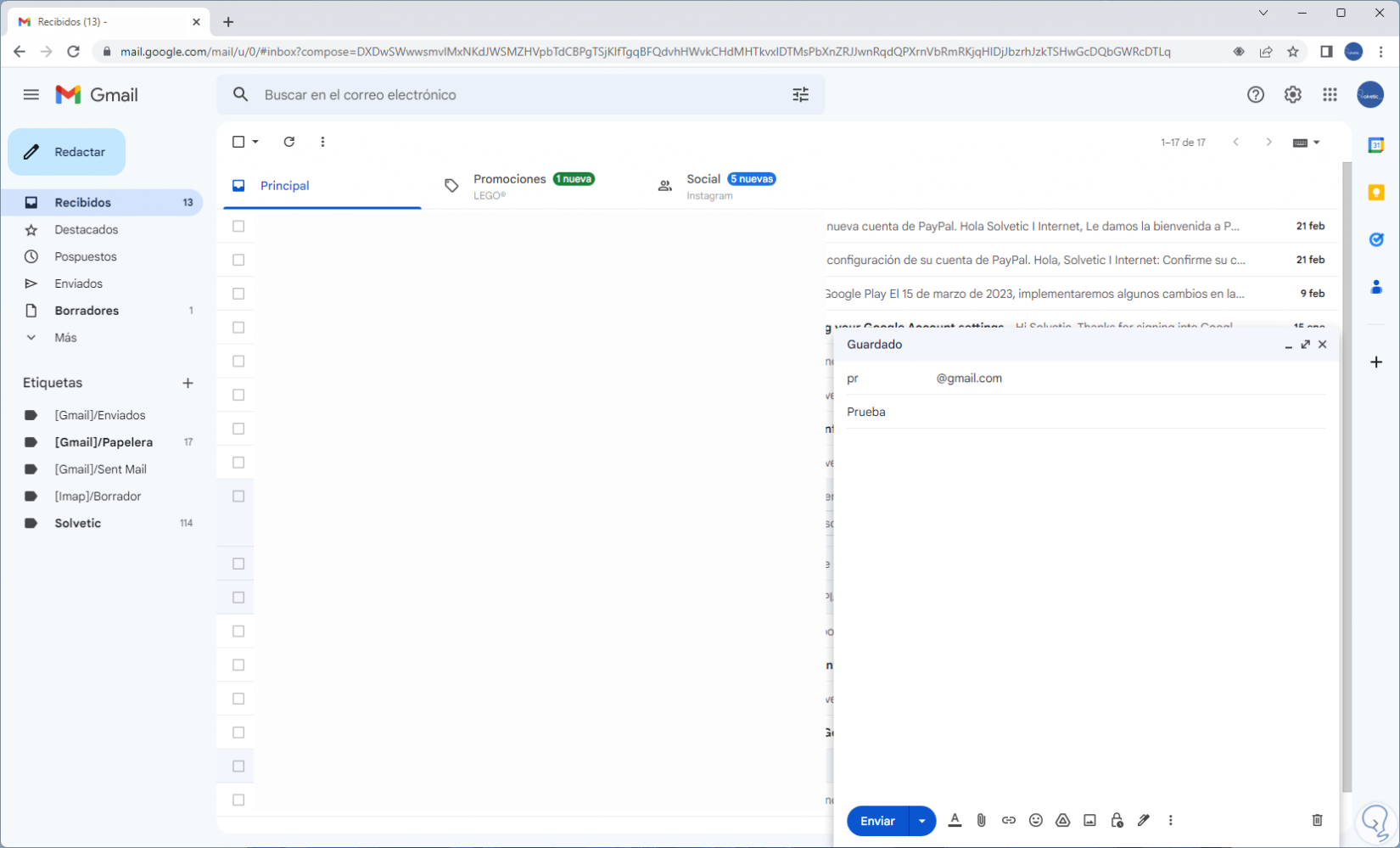 Con ello vamos a abrir la ventana emergente de redacción de correos: