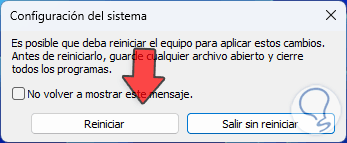Aplicamos los cambios y será necesario reiniciar Windows:
