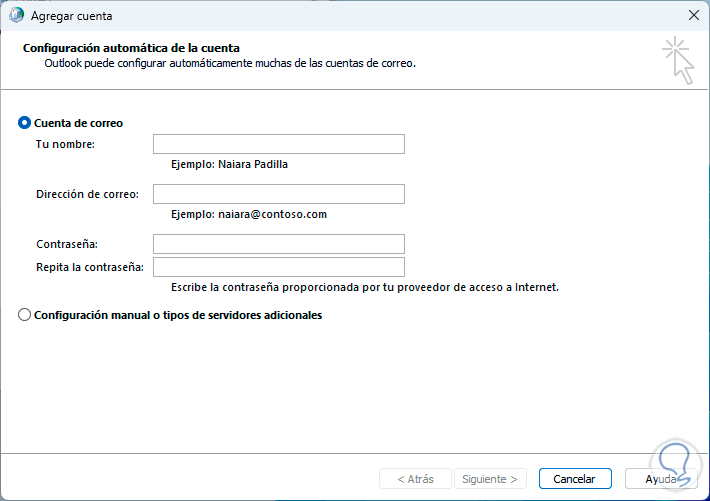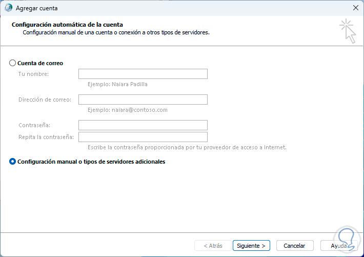 Activa la opción "Configuración manual o tipos de servidores adicionales":