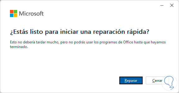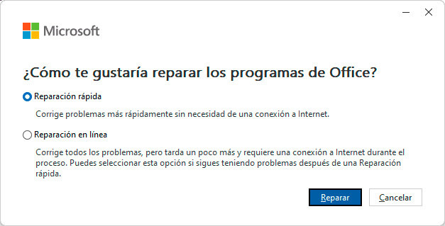 Otra de las opciones a usar es reparando Office, esto se encarga de realizar este proceso se reparara toda la suite de Office.