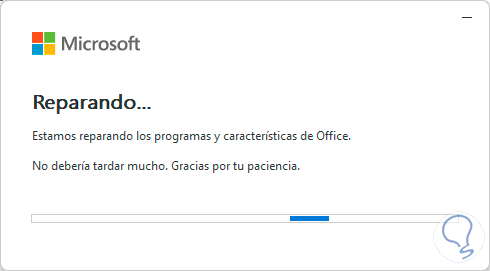 Damos clic en "Reparar" y esperamos que finalice el proceso: